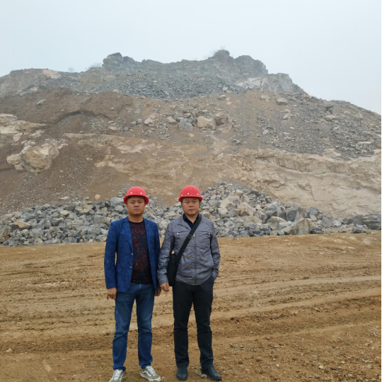 礦山采用露天開采、公路運(yùn)輸開拓。礦山開采的主要工藝流程為:輕型潛孔鉆機(jī)穿孔→中深孔爆破→大塊石機(jī)械二次破碎→挖掘機(jī)集中挖掘裝車→自卸汽車(額定載重量為10t)運(yùn)輸出到破碎站→大塊石破碎→料場堆放→外運(yùn)。生產(chǎn)臺階高度為10m,最終境界臺階高度為20m,臺階坡面角為68°,安全平臺寬度為 4m。礦區(qū)范圍內(nèi)自上而下大致形成了+105m、+85m、+70m和+56m平臺。 |