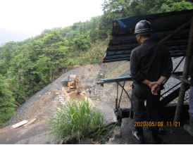 礦山已按照設(shè)計(jì)要求布置一處排土場(chǎng),上方設(shè)有截洪溝,下方設(shè)有攔截壩。排土場(chǎng)符合設(shè)計(jì)及相關(guān)規(guī)定要求。