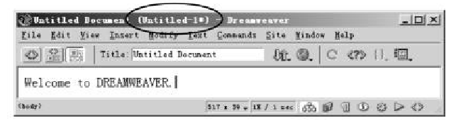 每次進(jìn)入Dreweaver時(shí),總是自動(dòng)打開(kāi)一個(gè)空白文檔,即可新建一個(gè)網(wǎng)頁(yè)。和在Word中的操作一樣,在文檔窗口內(nèi)可以直接輸入文本,如圖所示