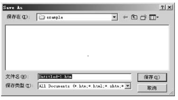 (2)在“保存在”列表框中,確定要把文件保存在哪個(gè)文件夾下。在此應(yīng)把文件保存到本地站點(diǎn)的“example”文件夾中。