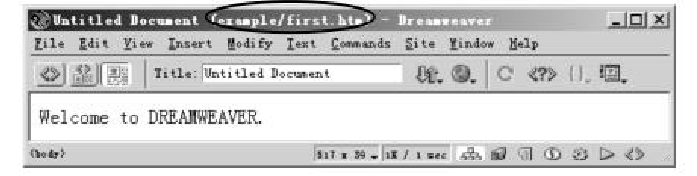 對(duì)照?qǐng)D可以發(fā)現(xiàn),網(wǎng)頁(yè)沒(méi)有存盤(pán)時(shí),文檔窗口標(biāo)題欄的圓括號(hào)內(nèi)顯示的文件。而一旦網(wǎng)頁(yè)存了盤(pán),則文檔窗口標(biāo)題欄的圓括號(hào)內(nèi)就顯示了當(dāng)前網(wǎng)頁(yè)的文件名(firsthtn)及其所在的文件夾(example)。