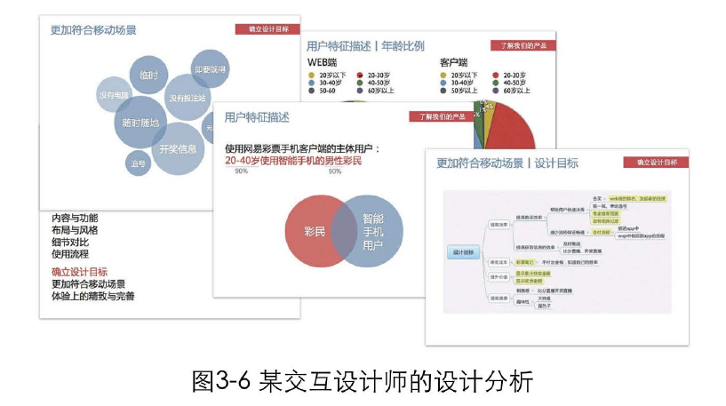 如果前三者你全都具備了,那么成為一個優(yōu)秀的設計師只是時間的問題??焖賹W習一些基本的專業(yè)技能,再投身到一些項目中去,你就可以很容易地產(chǎn)出一些優(yōu)質的作品,從而得到好的工作機會。某交互設計師的設計分析,如圖3-6所示。某交互設計師的原型截圖,如圖3-7所示。