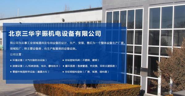 北京三華宇振機(jī)電設(shè)備有限公司為從事工業(yè)領(lǐng)域通用及專用設(shè)備的設(shè)計(jì)、生產(chǎn)、安裝、售后為一個(gè)整體設(shè)備生產(chǎn)廠家。 領(lǐng)域較廣,除主要設(shè)備類,也生產(chǎn)配套類的設(shè)備設(shè)施。