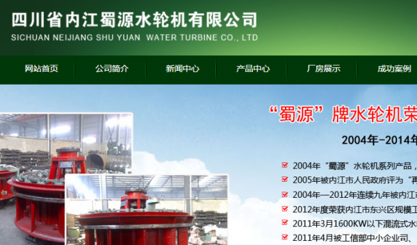 四川省內(nèi)江蜀源水輪機(jī)有限公司是原四川省國營內(nèi)江水輪機(jī)廠破產(chǎn)后,于2001年8月重組成立,是集生產(chǎn)、銷售為一體的民營經(jīng)濟(jì)實(shí)體。公司主要制造銷售水輪機(jī)及配套設(shè)備,造紙機(jī)械,礦山機(jī)械,食品機(jī)械,包裝機(jī)械。公司與四川省西華大學(xué)(原四川工業(yè)學(xué)院)流體機(jī)械研究所建立了長期合作關(guān)系,屬中國電工工業(yè)協(xié)會(huì)會(huì)員、四川省中小型水輪發(fā)電機(jī)組定點(diǎn)生產(chǎn)企業(yè)、內(nèi)江市東興區(qū)工業(yè)規(guī)模企業(yè)。公司現(xiàn)有職工100余人,解決下崗失業(yè)人員68人,有工程技術(shù)人員46人,大部分生產(chǎn)工人都是具有專門特長的技工。公司2004年“蜀源”水輪機(jī)系列產(chǎn)品,榮獲“中國知名發(fā)電機(jī)組十佳品牌;2005年被內(nèi)江市人民政府評為“再就業(yè)先進(jìn)企業(yè)”;2004年—2012年連續(xù)九年被內(nèi)江市東興區(qū)工商局評為“守合同重信用”企業(yè);2012年度榮獲內(nèi)江市東興區(qū)規(guī)模工業(yè)企業(yè)目標(biāo)考核“二等獎(jiǎng)”,2011年3月1600KW以下混流式水輪機(jī)被中國電器工業(yè)協(xié)會(huì)評為質(zhì)量可信產(chǎn)品;2011年4月被工信部中小企業(yè)司、四川省經(jīng)信委授予“國家中小企業(yè)扶持項(xiàng)目實(shí)施單位” ;2011年4月被四川省經(jīng)濟(jì)和信息化委員會(huì)授予—四川省“成長型“中小企業(yè);2014年4月16日獲得國家知識產(chǎn)權(quán)局授予的三項(xiàng)專利權(quán):新型軸流式水輪機(jī)、新型貫流式水輪機(jī)、新型沖擊式水輪機(jī)。
