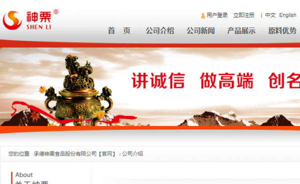 承德*栗食品股份有限公司,地處河北省承德市寬城滿族自治縣境內(nèi),注冊資本8000萬元,是一家集基地種植、科技研發(fā)、生產(chǎn)加工、市場營銷于一體的綜合性食品加工企業(yè),擁有獨立進出口經(jīng)營權(quán),是農(nóng)業(yè)產(chǎn)業(yè)化國家重點龍頭企業(yè)、國家林業(yè)重點龍頭企業(yè),神栗商標被認定為中國馳名商標。目前,公司主要有板栗、山楂、蜂蜜、食用菌、凍干及膨化食品等六大系列70余種單品,神栗牌板栗系列產(chǎn)品通過了HACCP食品安全體系認證和ISO9001國際質(zhì)量管理體系認證、英國BRC認證、美國的FDA認證,同時還通過了美國、日本、歐盟、中綠華夏四個有機食品認證和伊斯蘭清真食品認證、猶太潔食認證等26項權(quán)威認證,先后被認定為國家地理標志保護產(chǎn)品、全國生態(tài)原產(chǎn)地保護產(chǎn)品和全國板栗綠色原材料標準化生產(chǎn)基地;寬城傳統(tǒng)板栗栽培系統(tǒng)被農(nóng)業(yè)部認定為中國重要農(nóng)業(yè)文化遺產(chǎn),正在申報全球重要農(nóng)業(yè)文化遺產(chǎn)。
