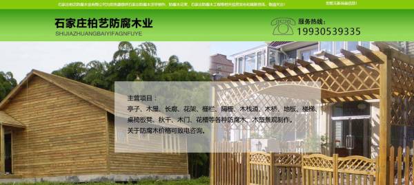 石家莊柏藝防腐木業(yè)有限公司選用我司企業(yè)防腐木業(yè)行業(yè)的網(wǎng)站優(yōu)化產(chǎn)品,其SEO關(guān)鍵詞有 石家莊防腐木涼亭制作,河北防腐木花架,石家莊防腐木。其特點是用很合適的展示方式、展示效果、站點框架,把客戶及其用戶很關(guān)心的問題突出表現(xiàn);并以簡潔明朗的設(shè)計風(fēng)格,清晰展現(xiàn)公司水平實力,確保一秒抓住目標用戶眼球,給用戶留下良好的第一印象。石家莊柏藝防腐木業(yè)有限公司是經(jīng)石家莊市市場監(jiān)督管理局審核的有資質(zhì)的公司。公司地址:河北石家莊高新開發(fā)區(qū)。