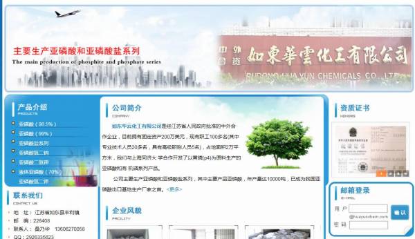 如東華*化工有限公司選用我司企業(yè)化工原料行業(yè)的網(wǎng)站優(yōu)化產(chǎn)品,其SEO關(guān)鍵詞有 亞磷酸,南通亞磷酸,如東亞磷酸,液體亞磷酸。其特點是用很合適的展示方式、展示效果、站點框架,把客戶及其用戶很關(guān)心的問題突出表現(xiàn);并以簡潔明朗的設(shè)計風(fēng)格,清晰展現(xiàn)公司水平實力,確保一秒抓住目標(biāo)用戶眼球,給用戶留下良好的第一印象。如東華*化工有限公司成立于2003年,是經(jīng)如東市市場監(jiān)督管理局審核的有資質(zhì)的公司,其統(tǒng)一社會信用代碼:91320623752**6411N。公司地址:江蘇省如東縣豐利鎮(zhèn)。