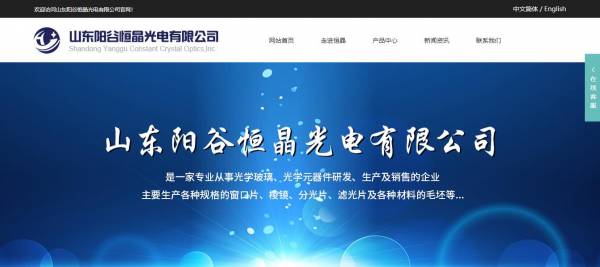 山東陽谷恒晶光電有限公司選用我司企業(yè)電子元器件行業(yè)的網(wǎng)站優(yōu)化產(chǎn)品,其SEO關(guān)鍵詞有 光學(xué)玻璃窗片,棱鏡,透鏡,濾光片,晶體,毛坯,山東陽谷恒晶光電有限公司。其特點是用很合適的展示方式、展示效果、站點框架,把客戶及其用戶很關(guān)心的問題突出表現(xiàn);并以簡潔明朗的設(shè)計風(fēng)格,清晰展現(xiàn)公司水平實力,確保一秒抓住目標用戶眼球,給用戶留下良好的第一印象。山東陽谷恒晶光電有限公司成立于2006年,是經(jīng)陽谷市市場監(jiān)督管理局審核的有資質(zhì)的公司,其統(tǒng)一社會信用代碼:91371521663521878C 。公司地址:山東陽谷祥光經(jīng)濟開發(fā)區(qū)。